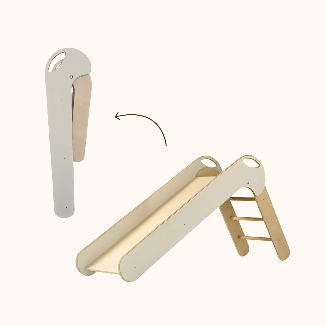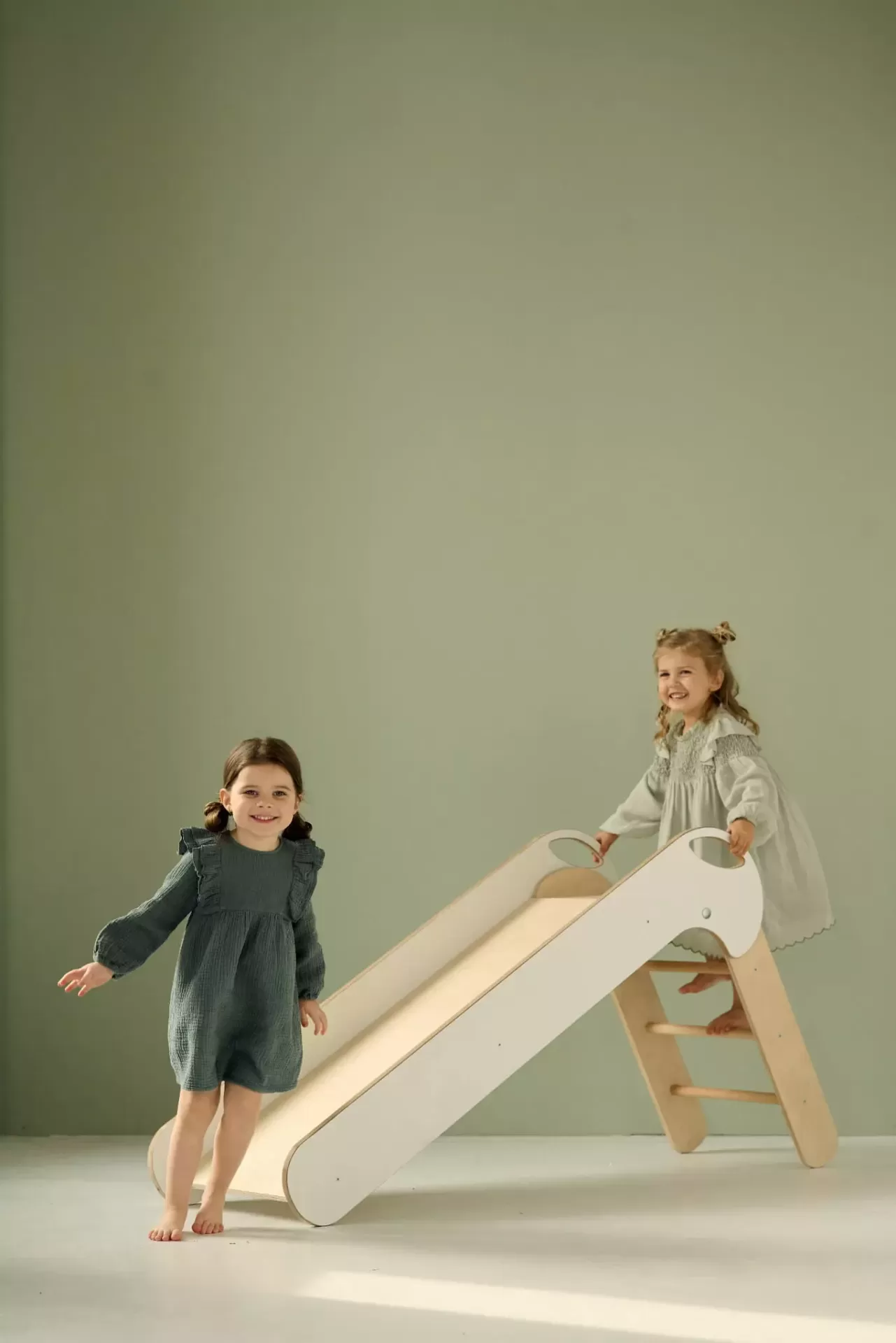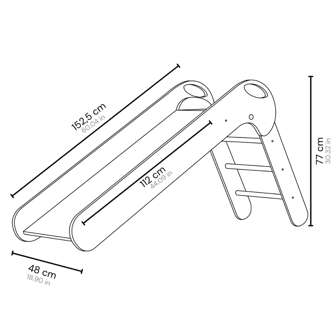 O escorrega é feito de materiais de alta qualidade - uma combinação de compensado de bétula e placa de MDF. A sua grande vantagem é a possibilidade de dobrá-lo depois de brincar, o escorrega pode ser dobrado em poucos instantes para ser facilmente guardado.