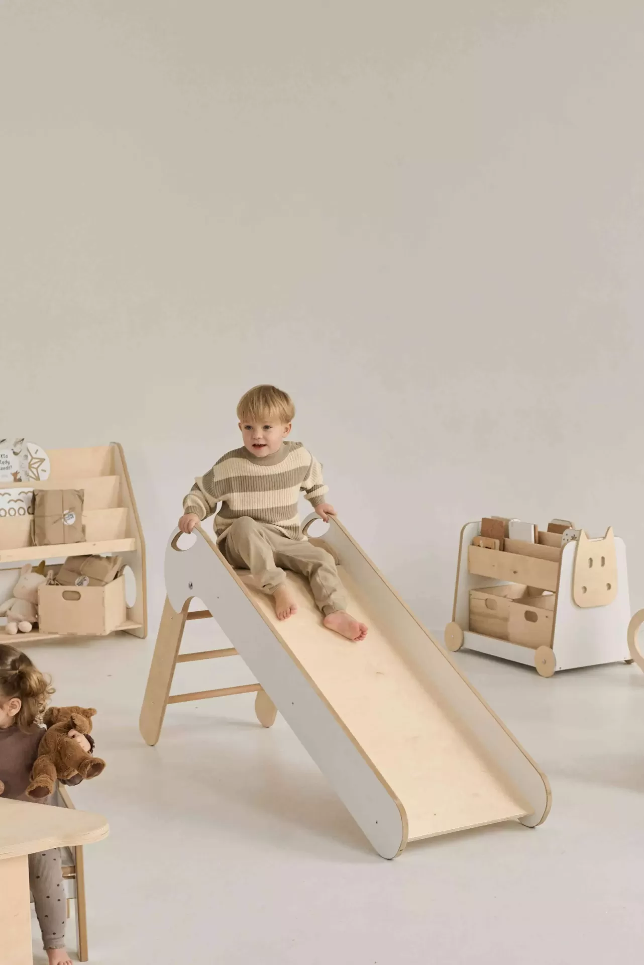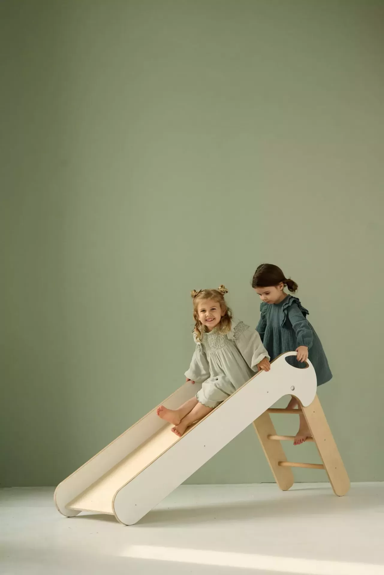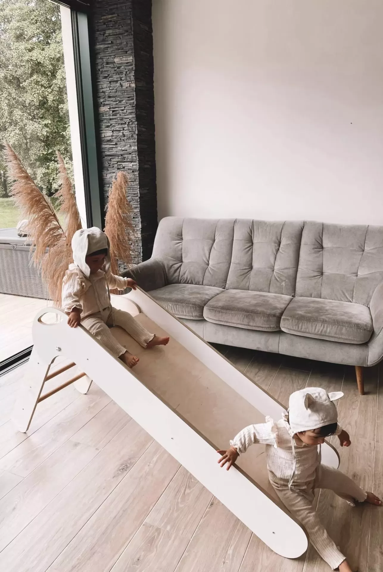 O escorrega de madeira é uma alternativa ao escorrega clássico. Permite que o seu filho se divirta despreocupadamente em casa.