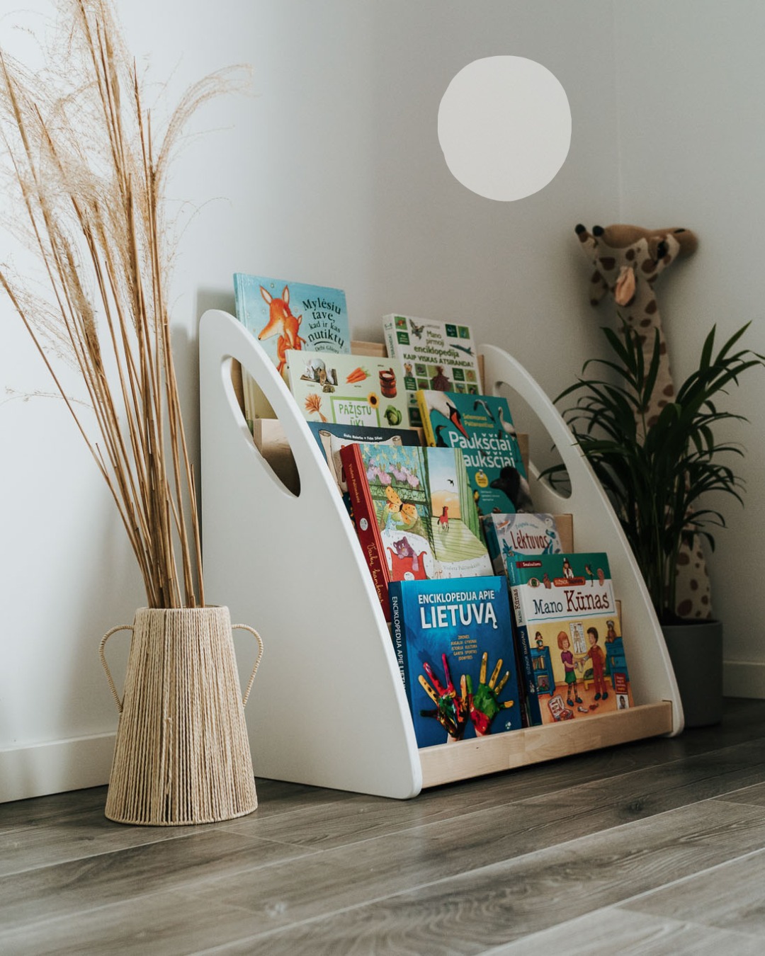 Feita à mão em madeira natural de alta qualidade, esta estante compacta foi criada segundo os princípios Montessori: acessível, funcional e simples, ideal para criar um cantinho de leitura bonito, organizado e estimulante.