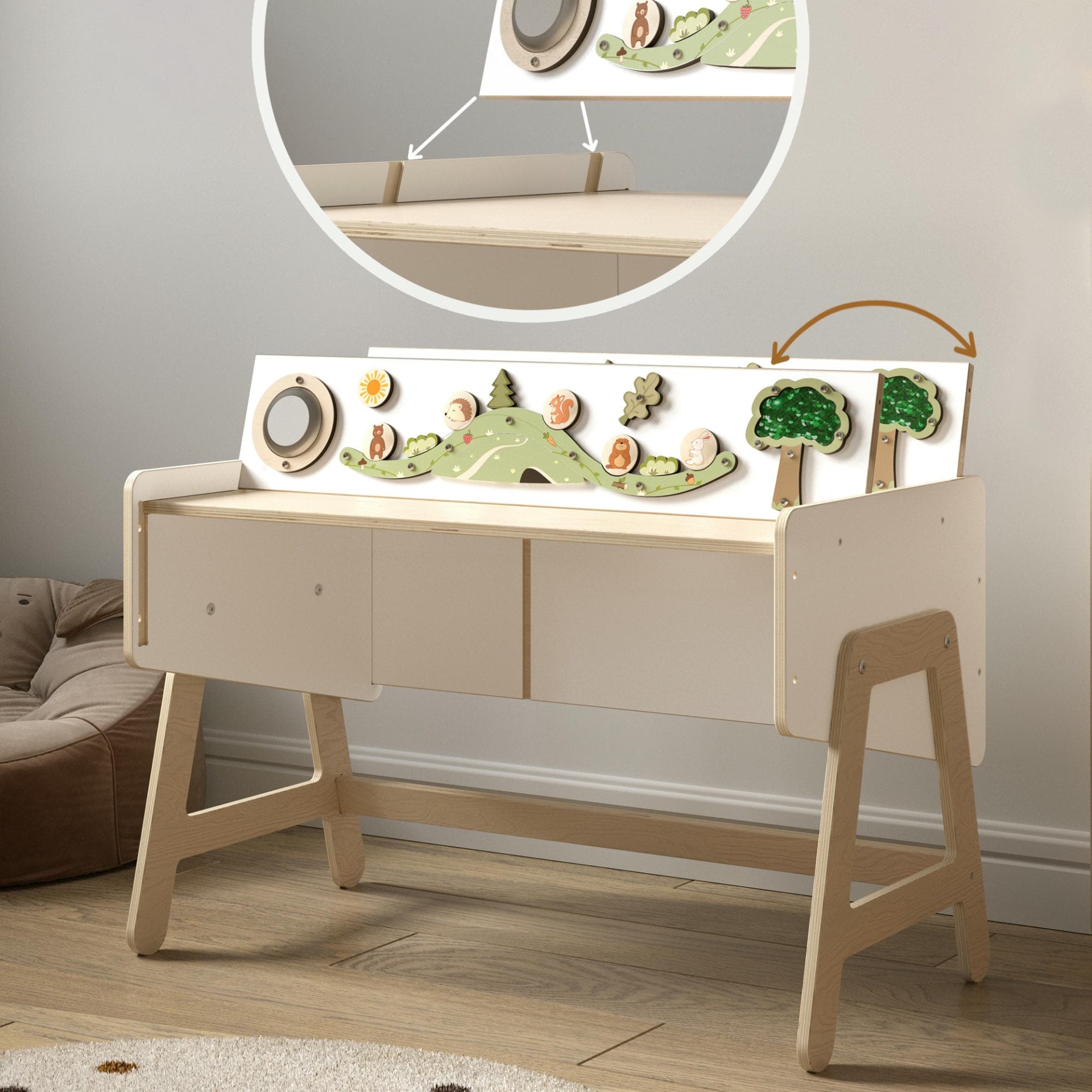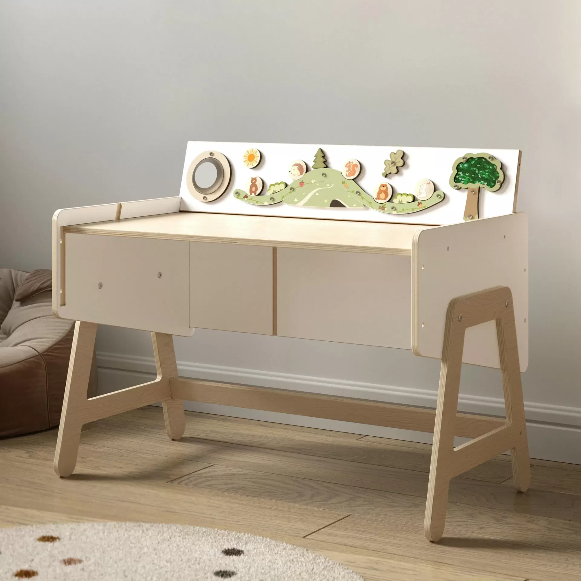 A Estante Mesa para Brinquedos LILU foi concebida para acompanhar o crescimento do seu filho, combinando armazenamento inteligente, espaço de atividades e desenvolvimento infantil num único móvel funcional e seguro.