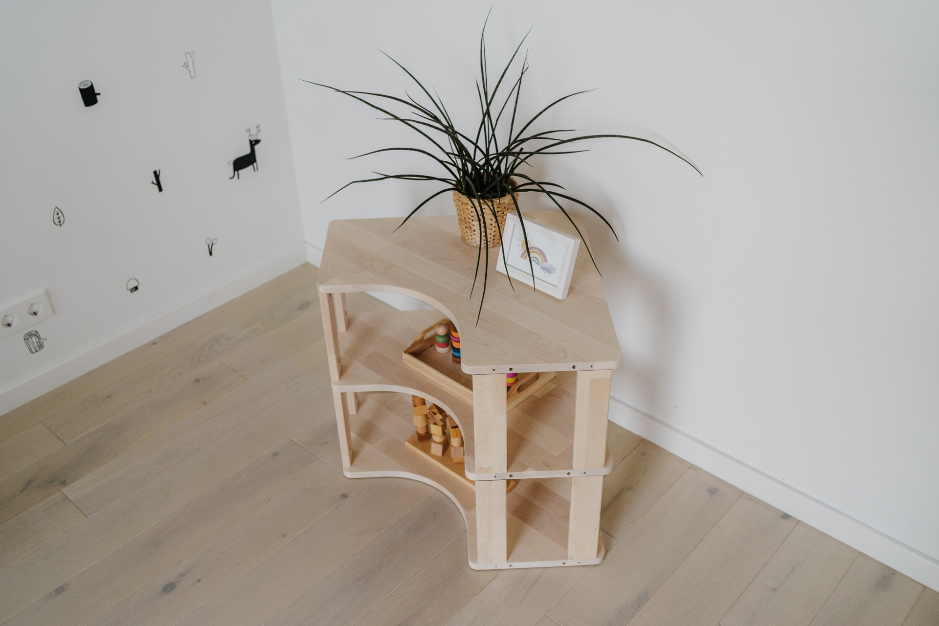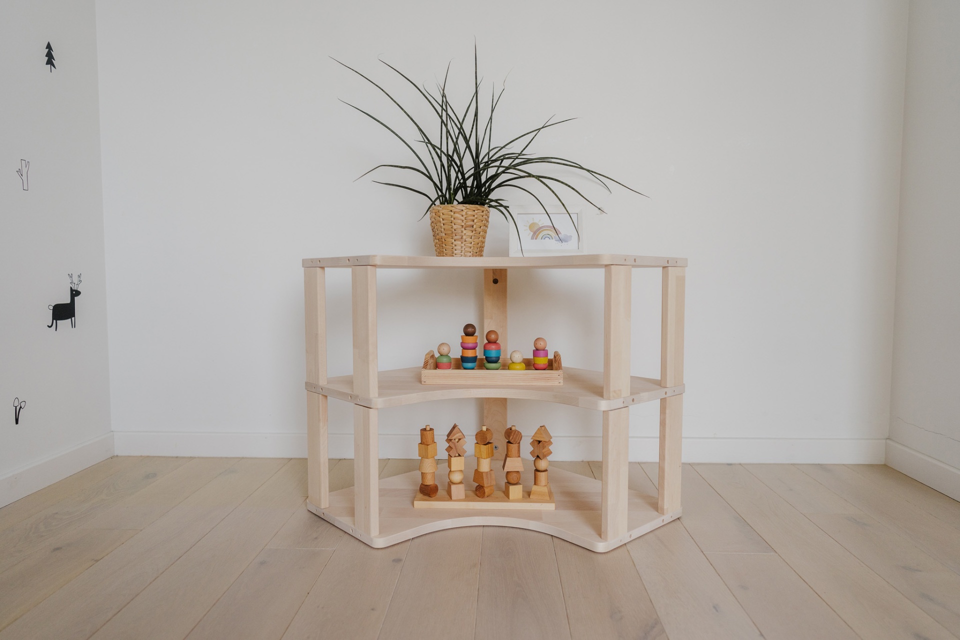 As nossas Prateleiras Montessori foram pensadas para acompanhar o desenvolvimento das crianças, promovendo a sua autonomia e estimulando a organização desde os primeiros anos. Com um design simples, bonito e adaptado ao universo infantil, são ideais para arrumar livros, brinquedos e outros objetos de forma acessível e prática.