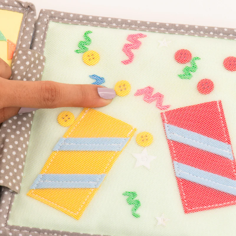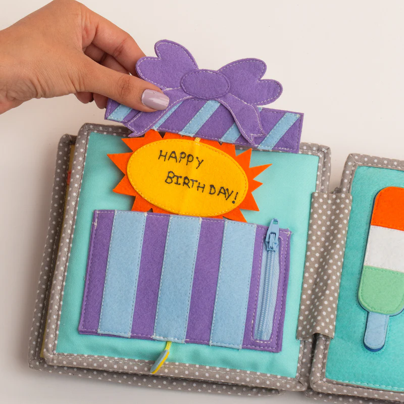 Feito com feltro macio e 100% algodão, o livro sensorial do ursinho é perfeito para mãos pequenas explorarem texturas, cores e formas. Cada página convida a uma jornada sensorial suave, cheia de movimentos direcionados dos dedos, resolução de problemas e descobertas interativas que ajudam a compreender causa e efeito.