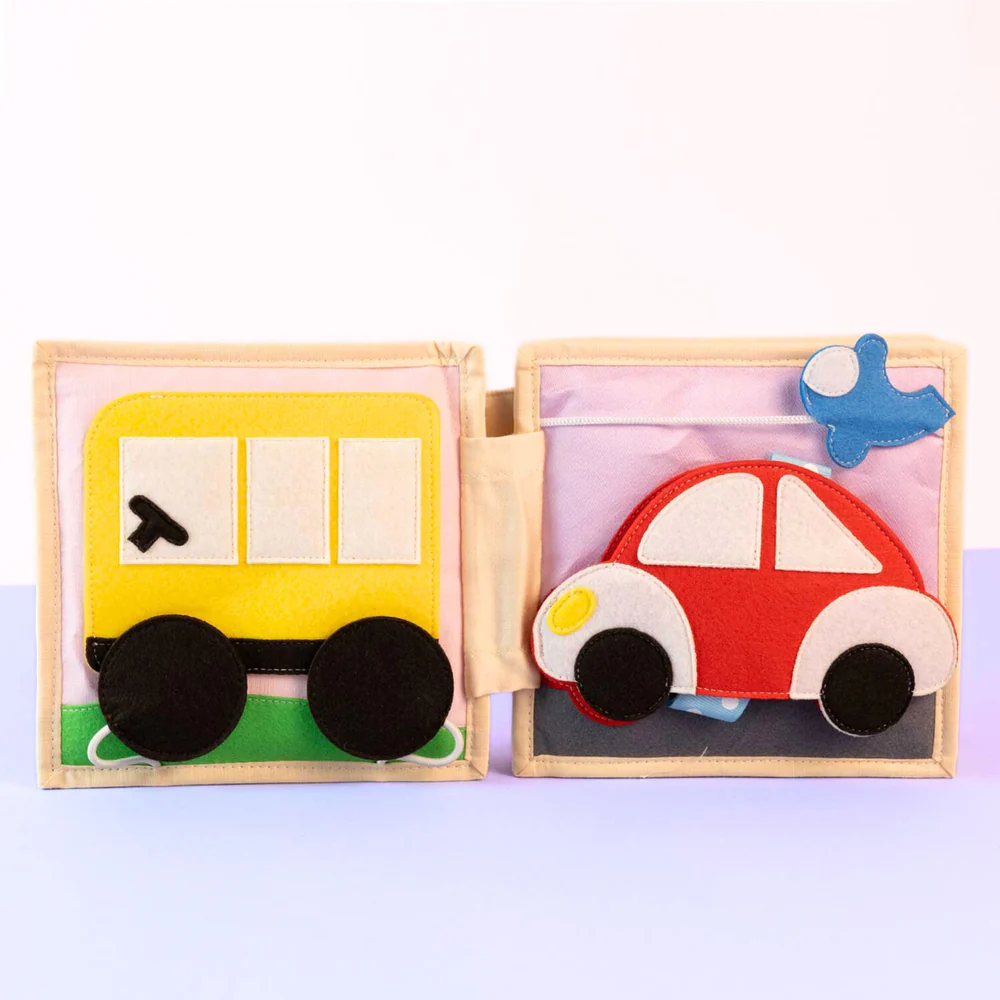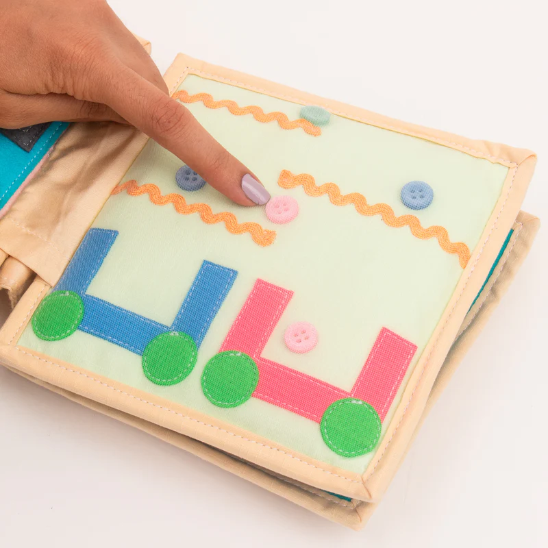 O Foguetão é um mini livro sensorial de 6 páginas pensado para tornar as viagens de carro e os momentos de brincadeira em casa mais divertidos e educativos. Ideal para crianças a partir dos 2 anos, este livro sensorial combina texturas macias, cores vibrantes e elementos interativos, estimulando a imaginação, a curiosidade e o desenvolvimento cognitivo de forma lúdica e segura.