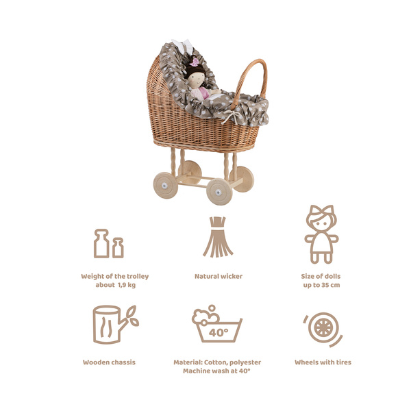 Descubra o LULU Carrinho de Boneca, um brinquedo artesanal feito 100% à mão com vime natural e materiais orgânicos. Criado para crianças que adoram passear com as suas bonecas ou brinquedos favoritos, este carrinho combina durabilidade, estilo e diversão, tornando-se o presente perfeito para momentos de imaginação sem fim.