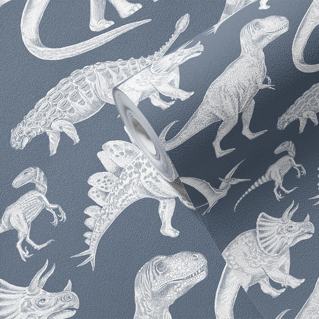 Transforme o quarto do seu filho em uma emocionante aventura pré-histórica com o nosso Papel de Parede Infantil Dinossauro Azul.