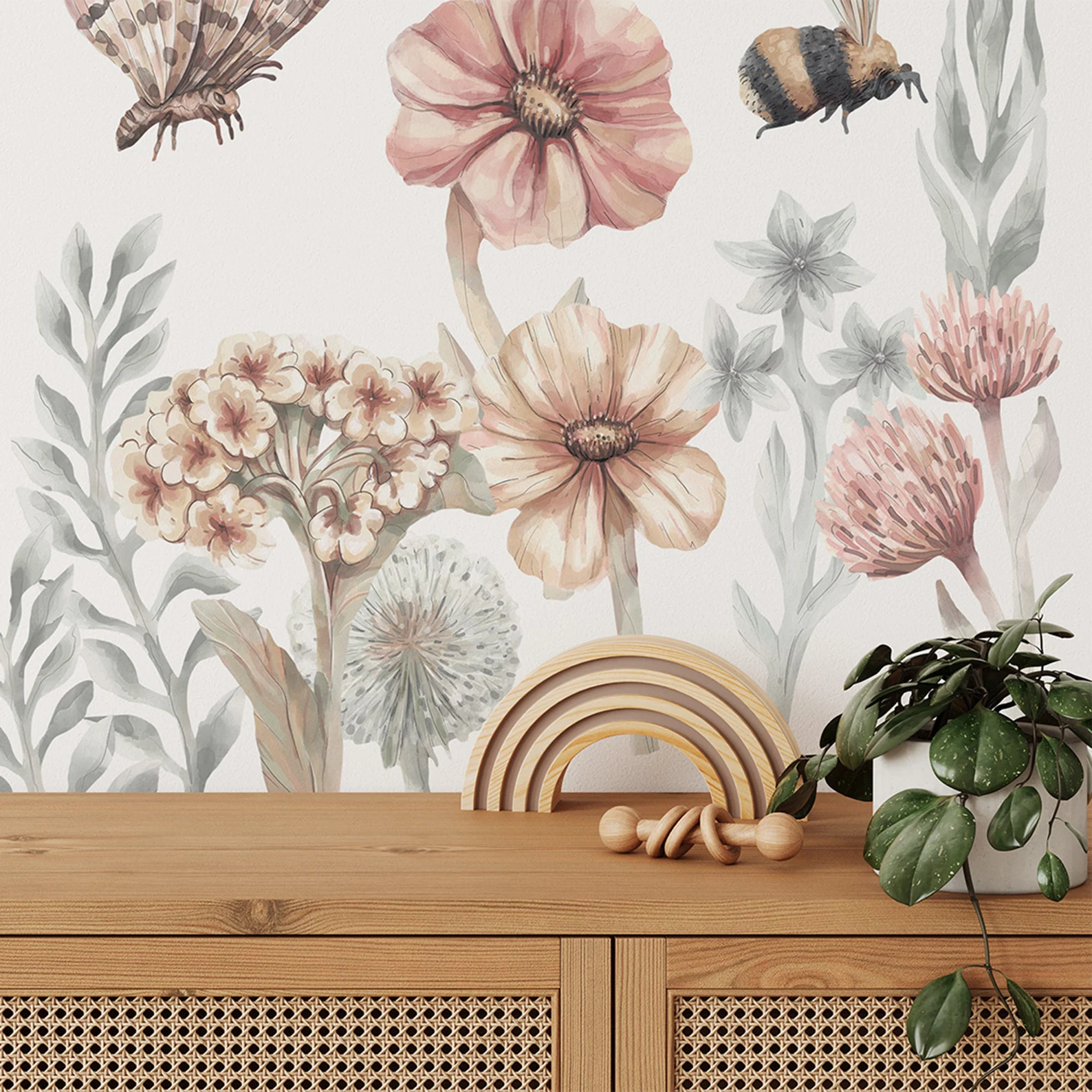 Leve magia e sofisticação ao quarto do seu filho com o papel de parede Flores Silvestres Grandes. Com flores pintadas à mão em tamanho maior, borboletas e abelhas, este design transforma qualquer ambiente em um jardim encantado cheio de cores e alegria.