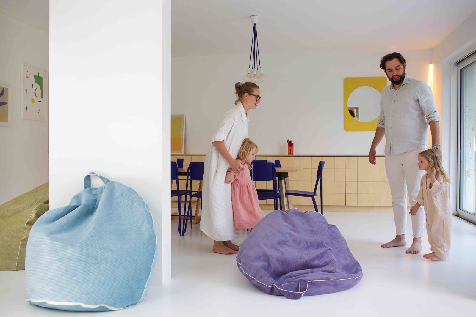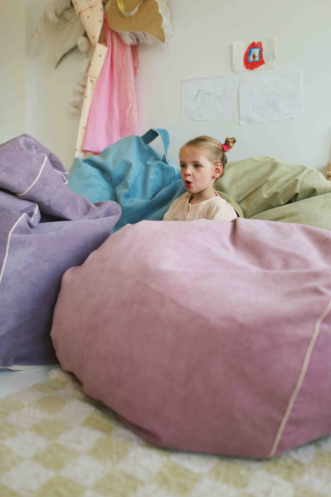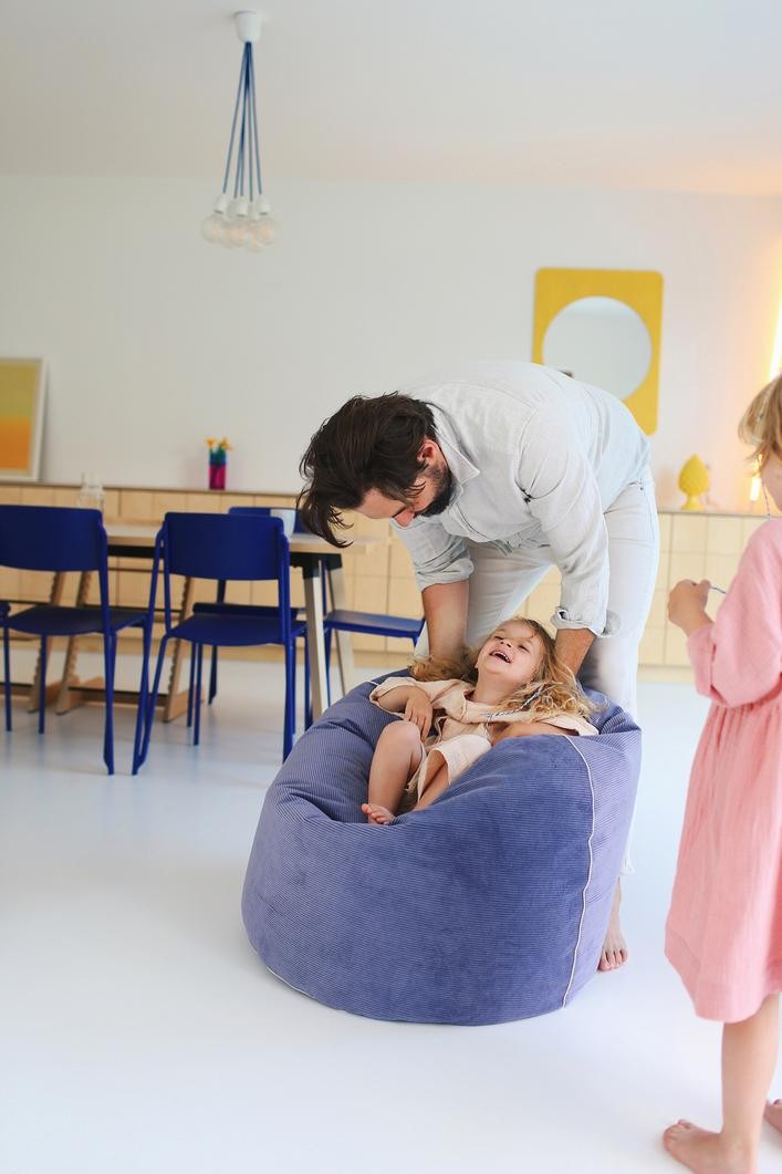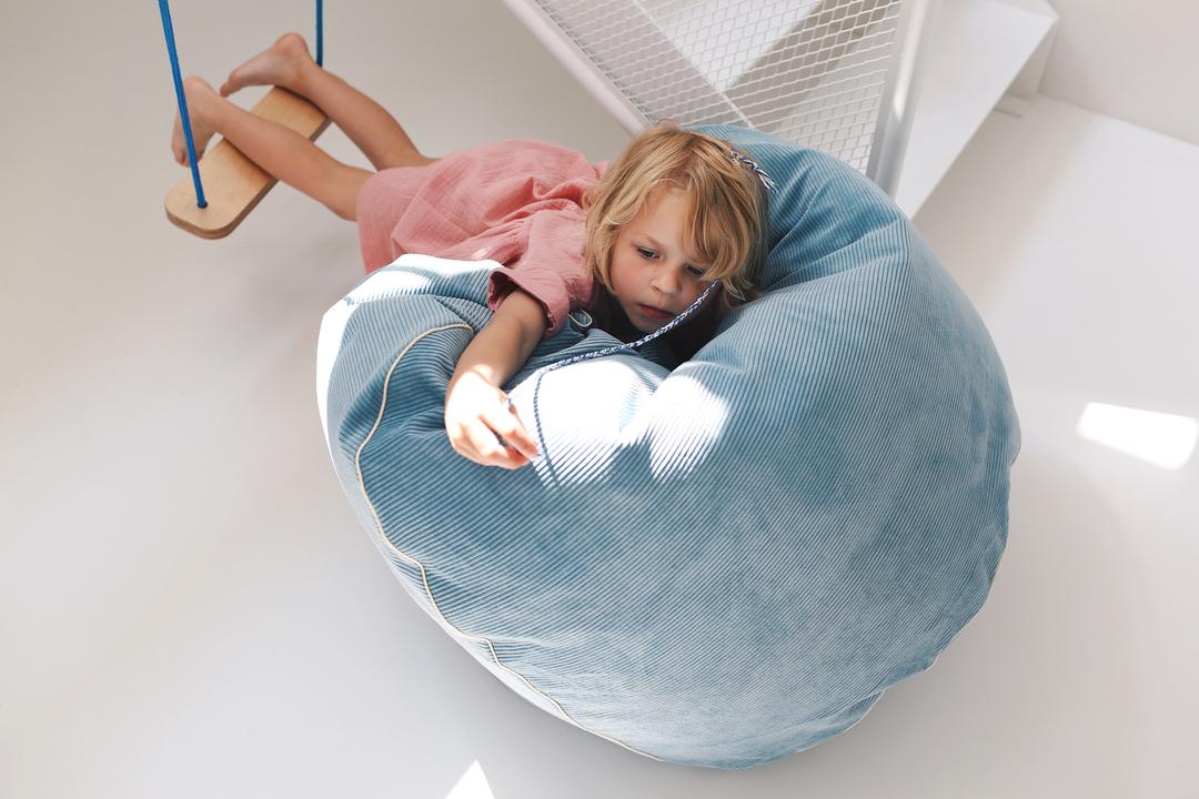 Os pufes BINI COZY, tamanho L (grande), não só proporcionam um lugar ideal para sentar e deitar, mas também são ótimos para brincadeiras.