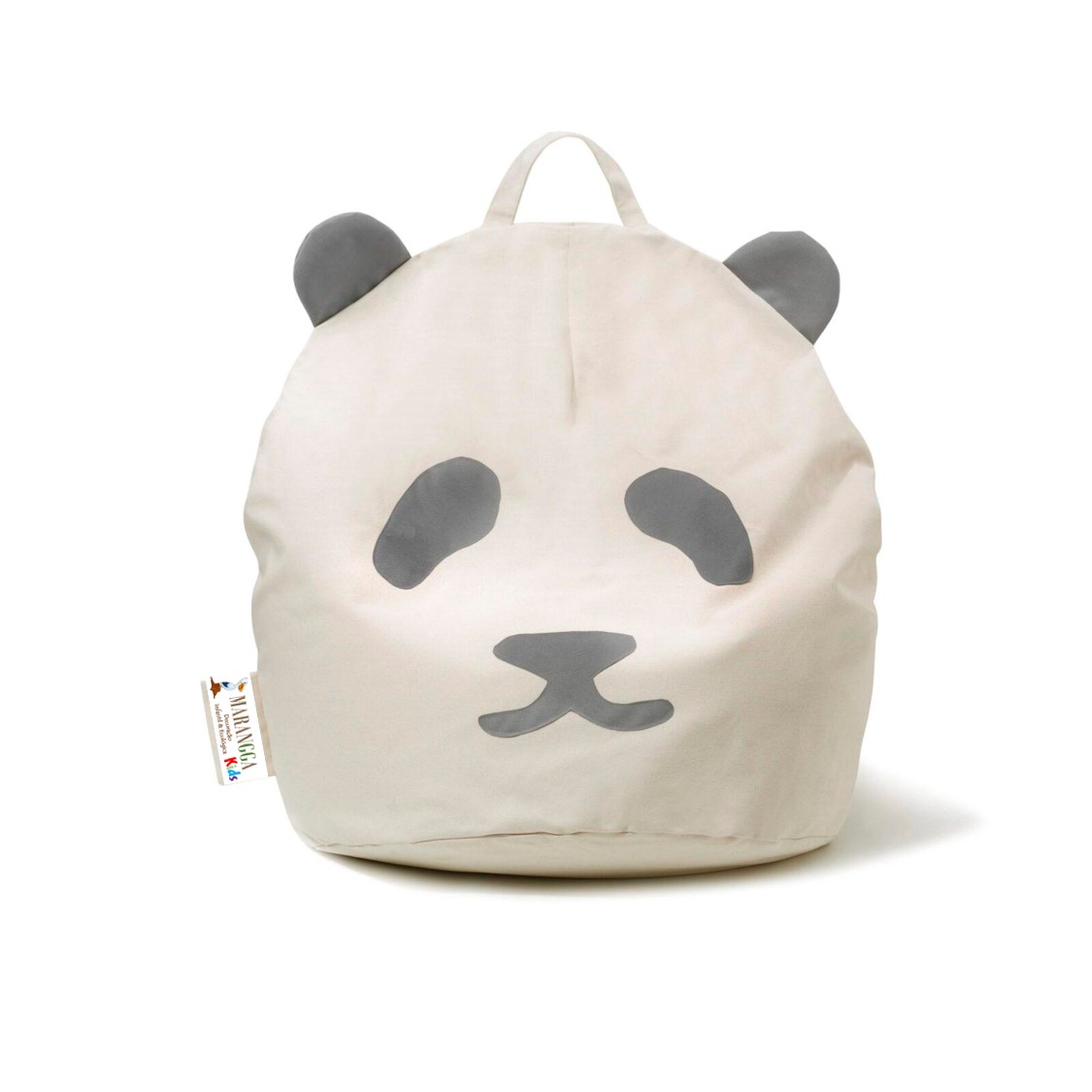 O pufe BINI PANDA está disponível em várias cores à sua escolha. Este modelo tem a cara do panda na frente e algodão liso na parte traseira.