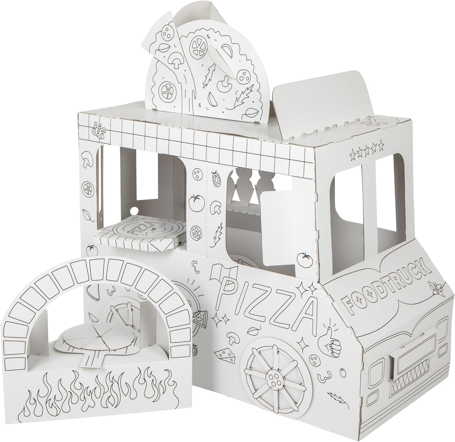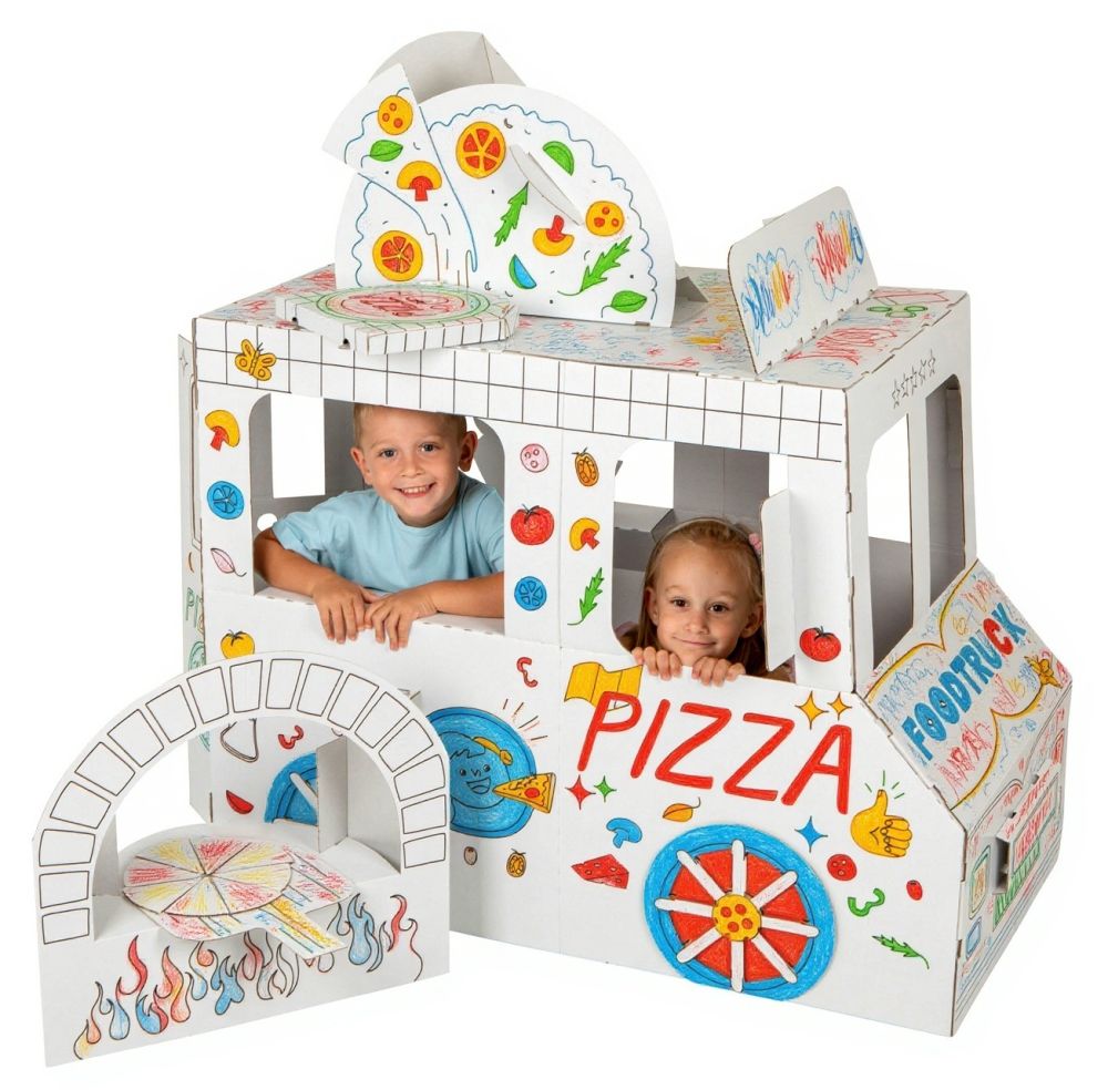 Imagine administrar a sua própria Roulote de comida ! Hoje serve pizzas crocantes, amanhã sorvetes coloridos e deliciosos. Com esta roulote em cartão para colorir, as crianças podem ser chef, vendedor e dono do restaurante ao mesmo tempo.