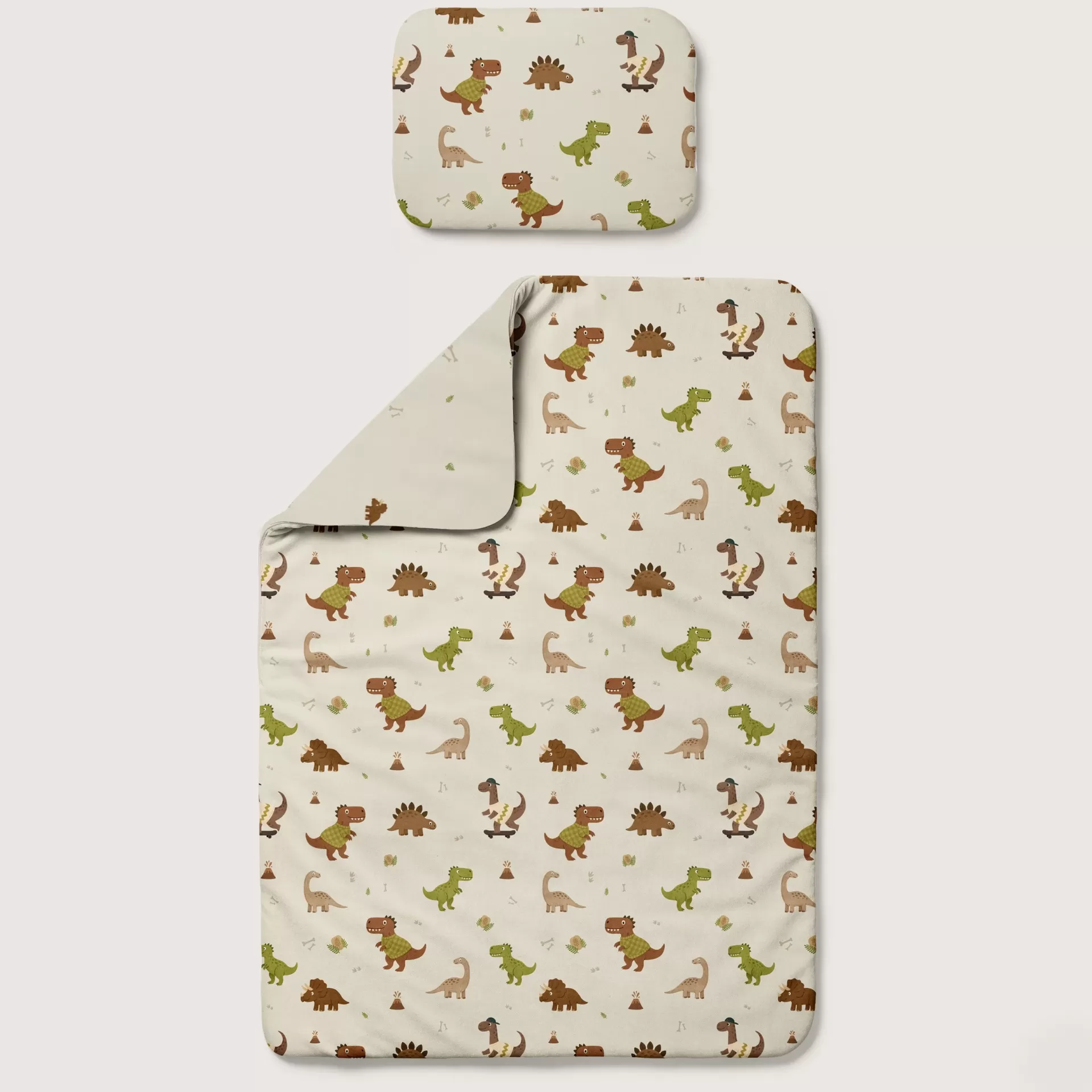 A Roupa de Cama Dupla Face - Dino faz conjunto com os nossos sacos de dormir para bebé e sacos de dormir com pernas, permitindo criar um ambiente de sono harmonioso, seguro e coordenado. Esta combinação não só encanta o quarto, mas também oferece conforto adicional durante a noite.