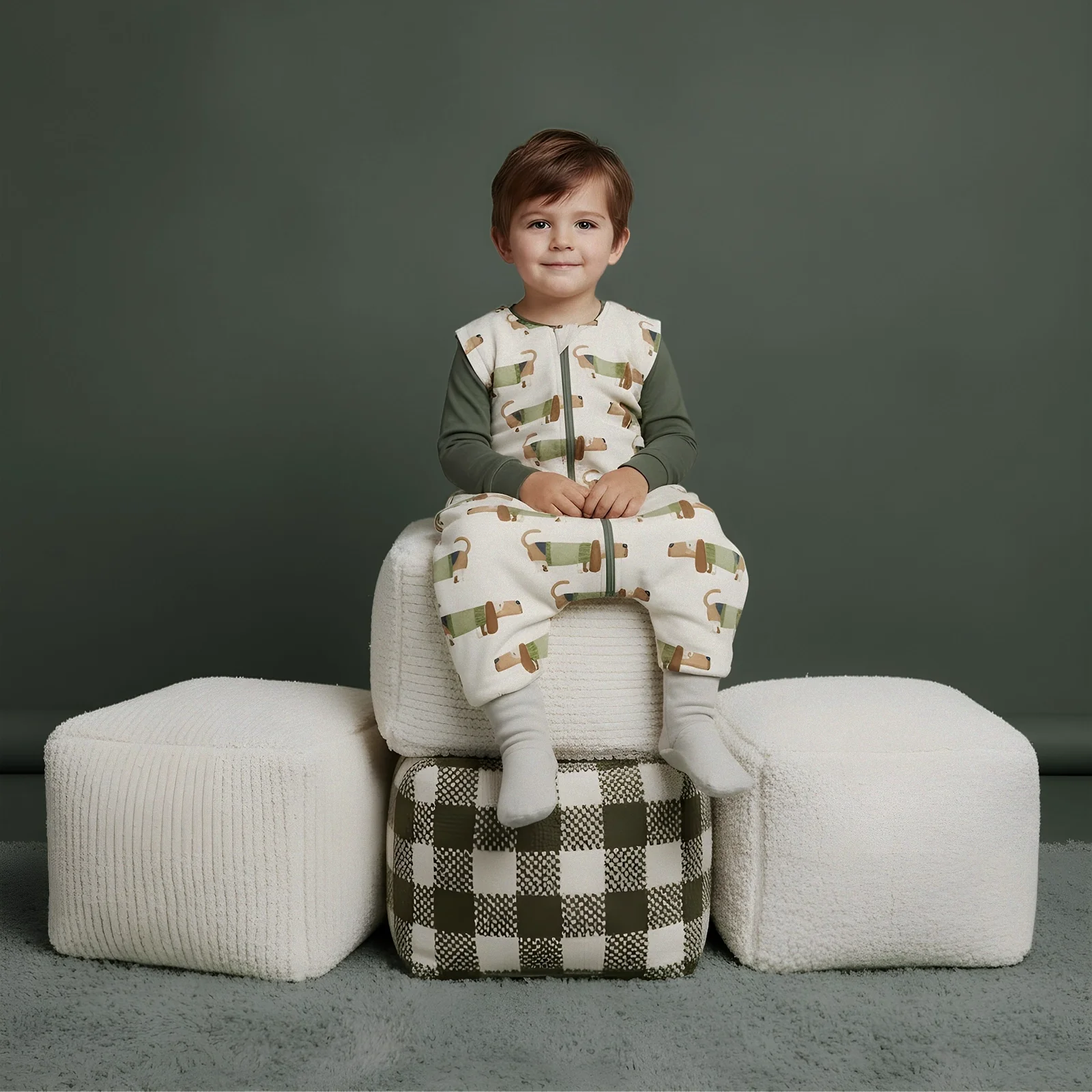O Saco de Dormir com Pernas – Cãozinho é o sucessor do saco de dormir tradicional para bebés e crianças pequenas. Criado para proporcionar noites seguras, confortáveis e tranquilas, ele permite que os pequenos se movam, brinquem e explorem o quarto antes de dormir, sem comprometer a segurança ou o conforto.