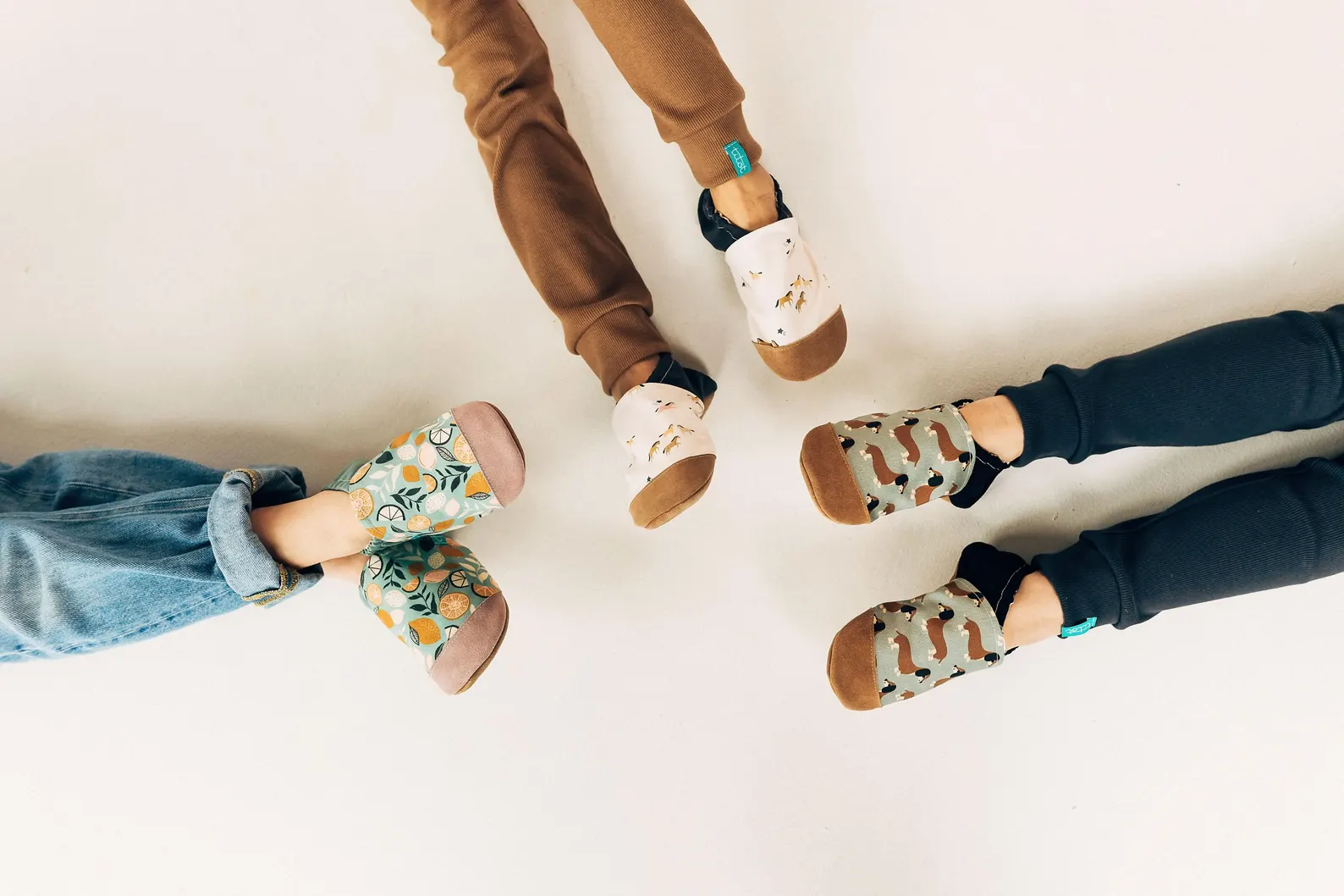 Cada par é cuidadosamente feito à mão, utilizando apenas tecidos da mais alta qualidade. Desenhados para respeitar o desenvolvimento natural do pé, estes sapatinhos oferecem: