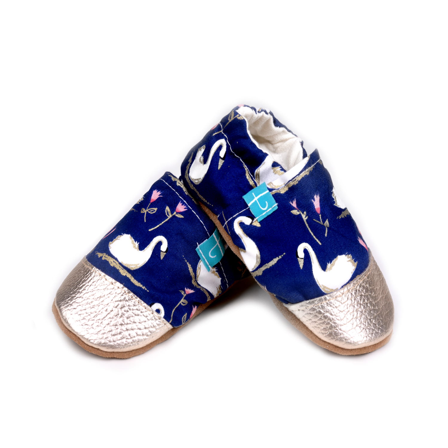 Deixe que os primeiros passos do seu pequeno sejam guiados pela doçura e pelo conforto. Estes sapatinhos com um padrão maravilhoso Cisnes são a união perfeita entre a elegância de outros tempos e o bem-estar moderno. Delicados e apaixonantes, são o complemento que faltava para tornar qualquer conjunto ainda mais especial.