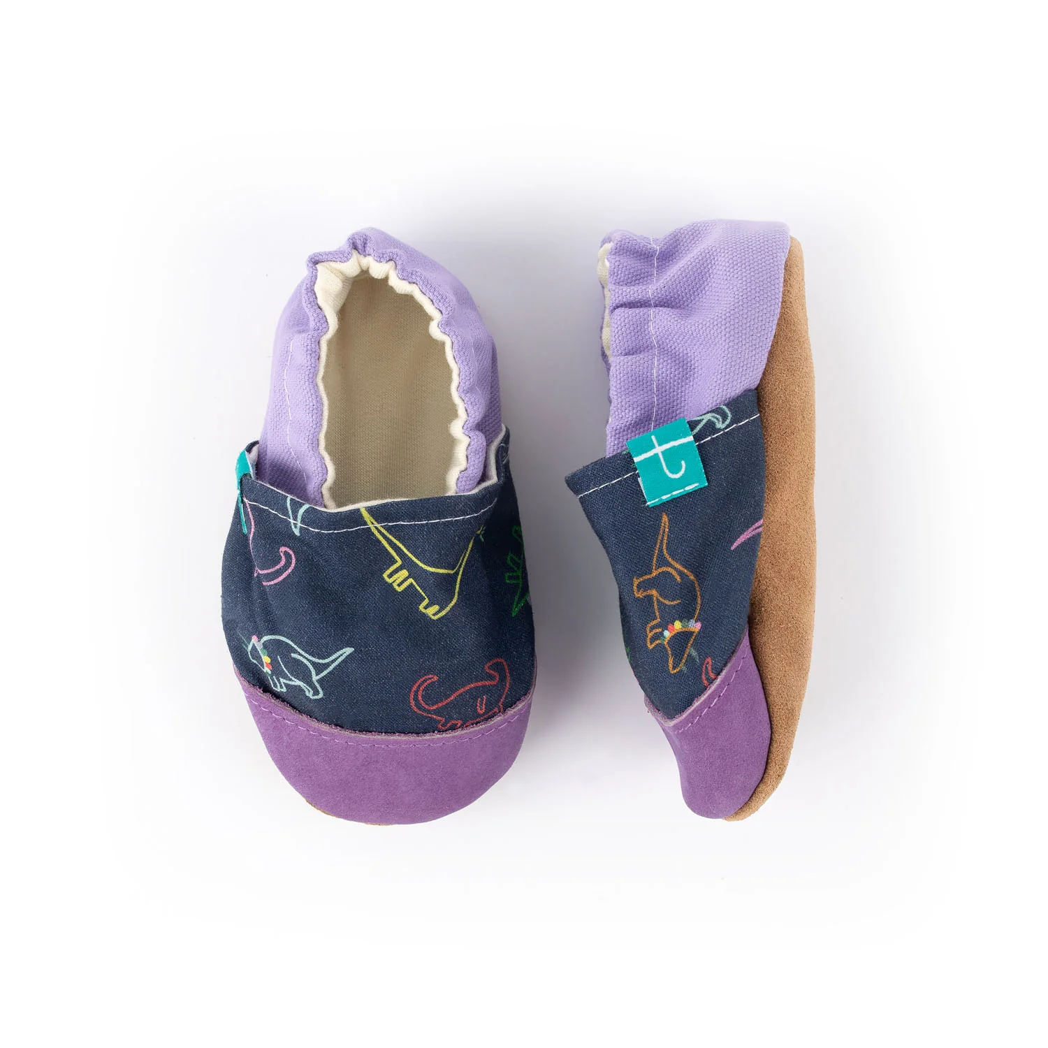 Sapatinhos de Criança em Couro Natural – Dinossauro Violeta