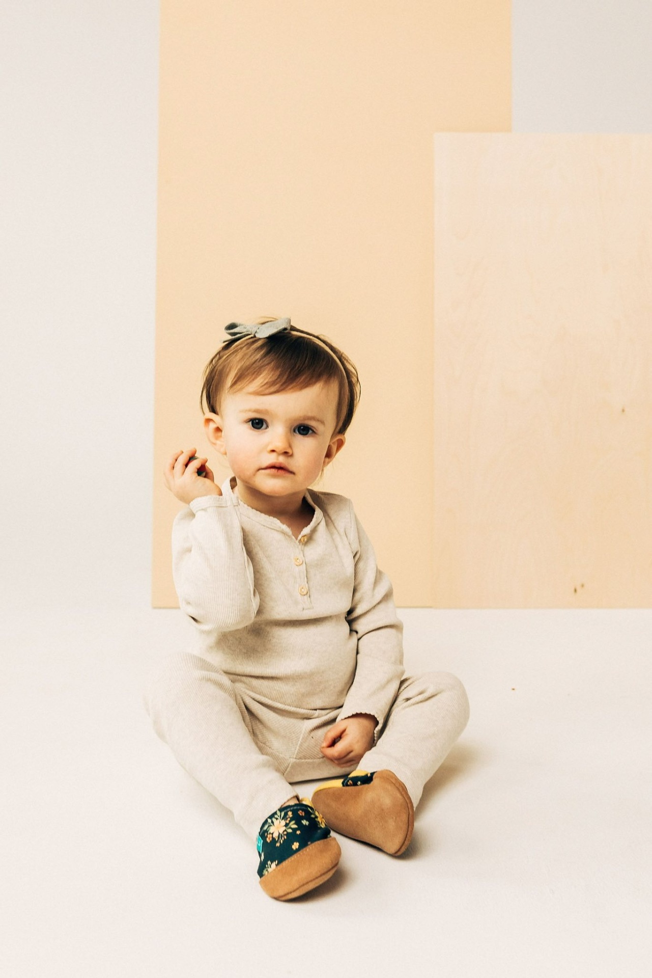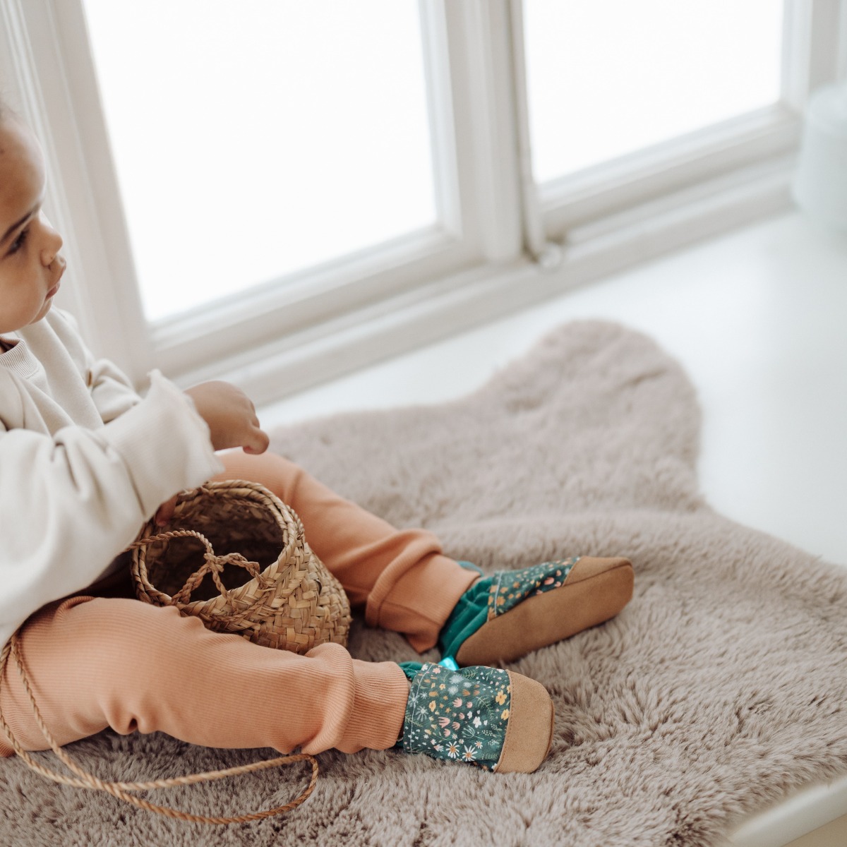 Cada par é cuidadosamente feito à mão, utilizando apenas tecidos da mais alta qualidade. Desenhados para respeitar o desenvolvimento natural do pé, estes sapatinhos oferecem: