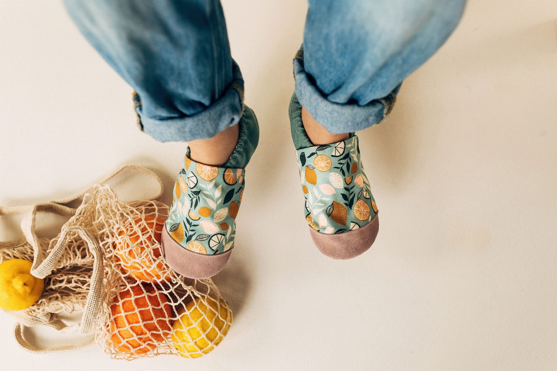 Deixe que os primeiros passos do seu pequeno sejam guiados pela doçura e pelo conforto. Estes sapatinhos com um padrão maravilhoso Limões são a união perfeita entre a elegância de outros tempos e o bem-estar moderno. Delicados e apaixonantes, são o complemento que faltava para tornar qualquer conjunto ainda mais especial.