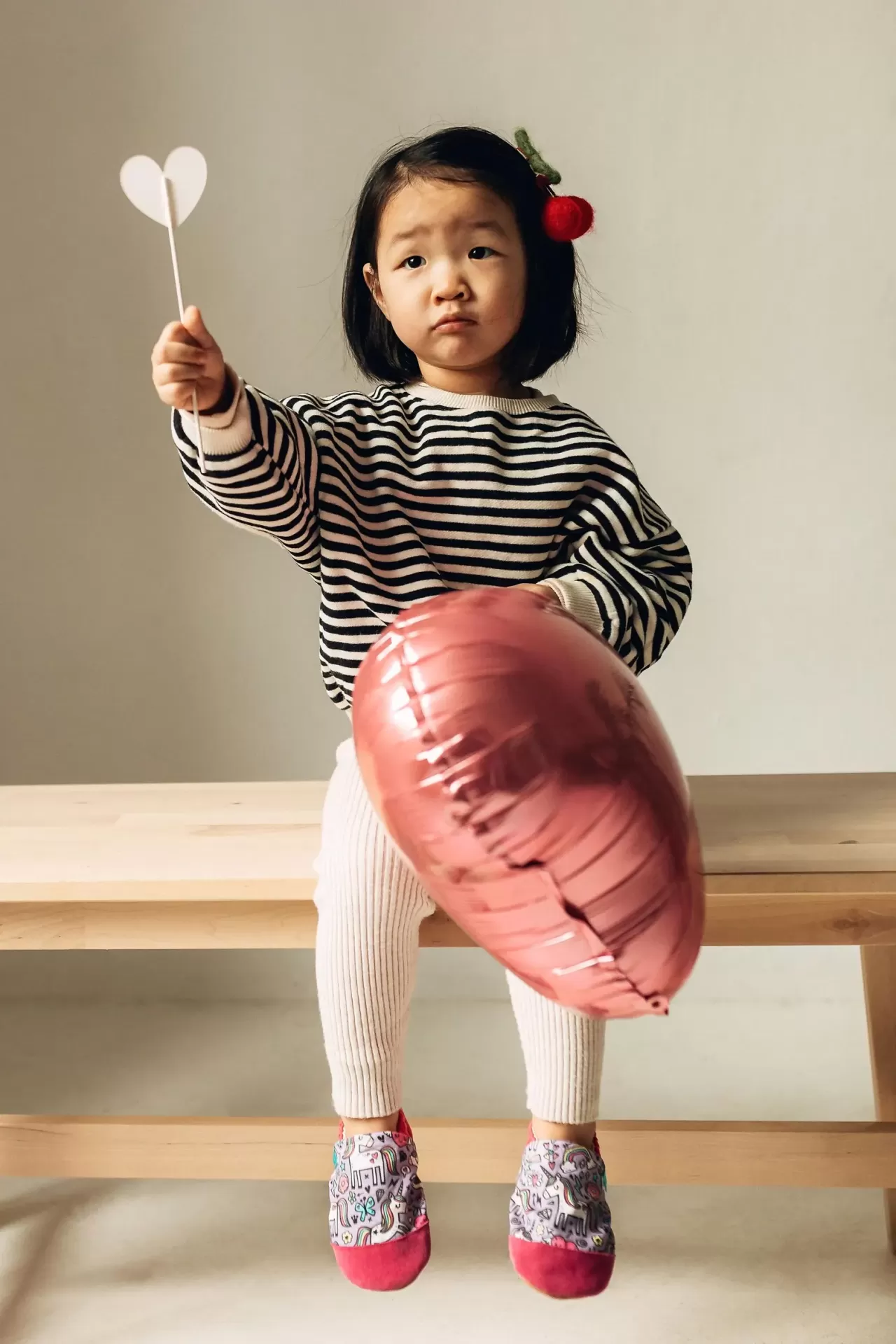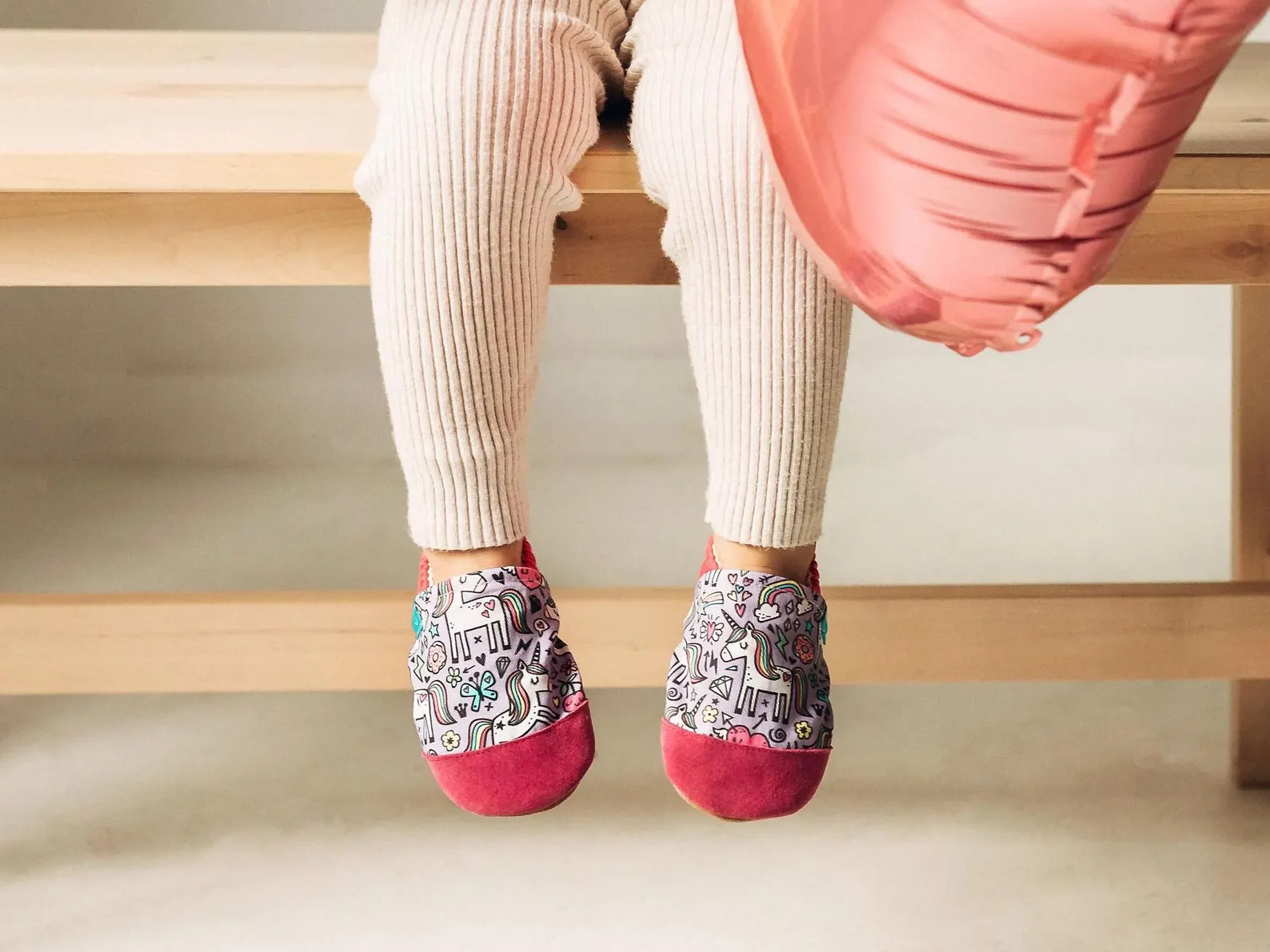 Deixe que os primeiros passos do seu pequeno sejam guiados pela doçura e pelo conforto. Estes sapatinhos com um padrão maravilhoso Unicórnio e vibrantes são a união perfeita entre a elegância de outros tempos e o bem-estar moderno. Delicados e apaixonantes, são o complemento que faltava para tornar qualquer conjunto ainda mais especial.