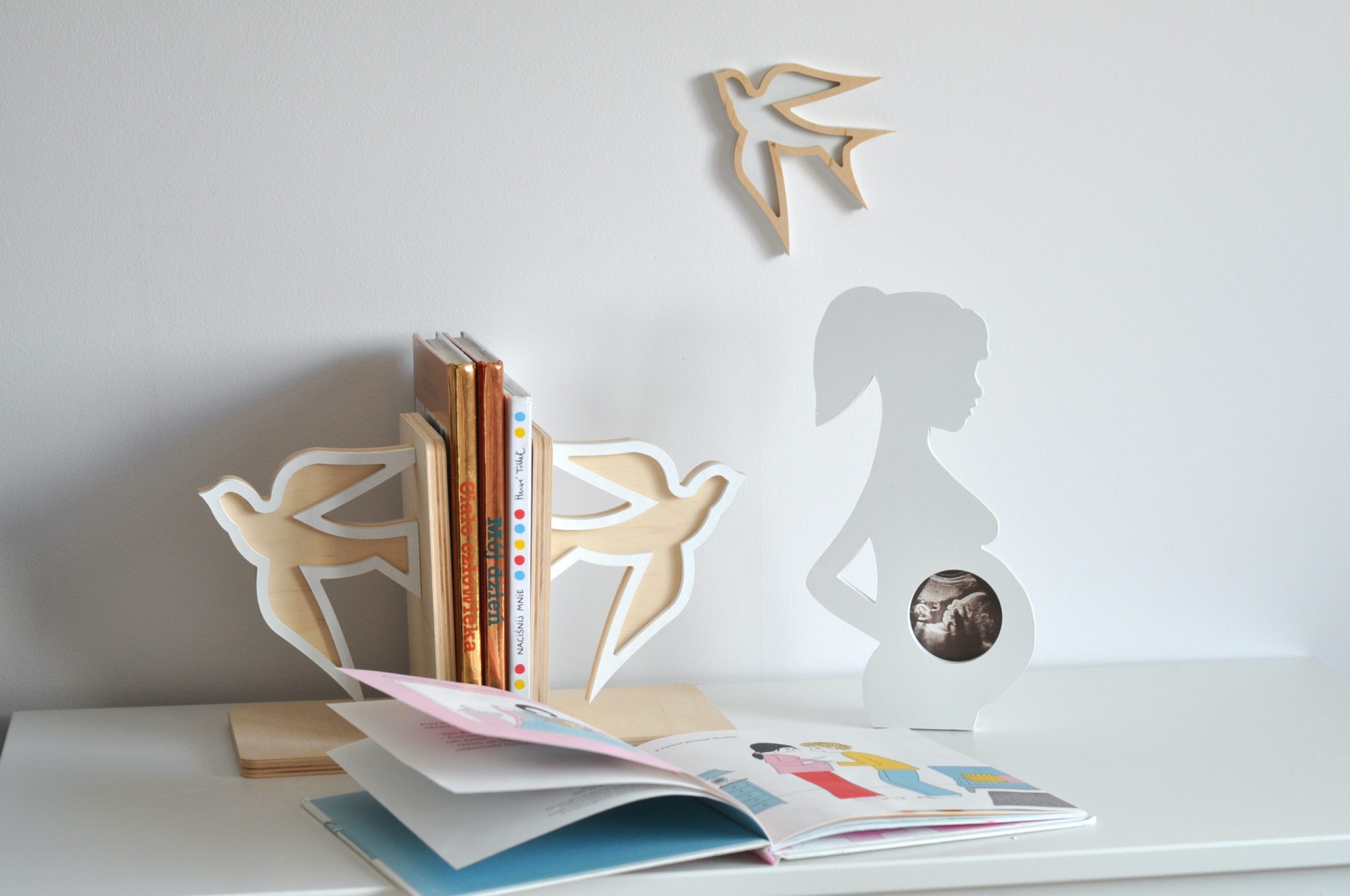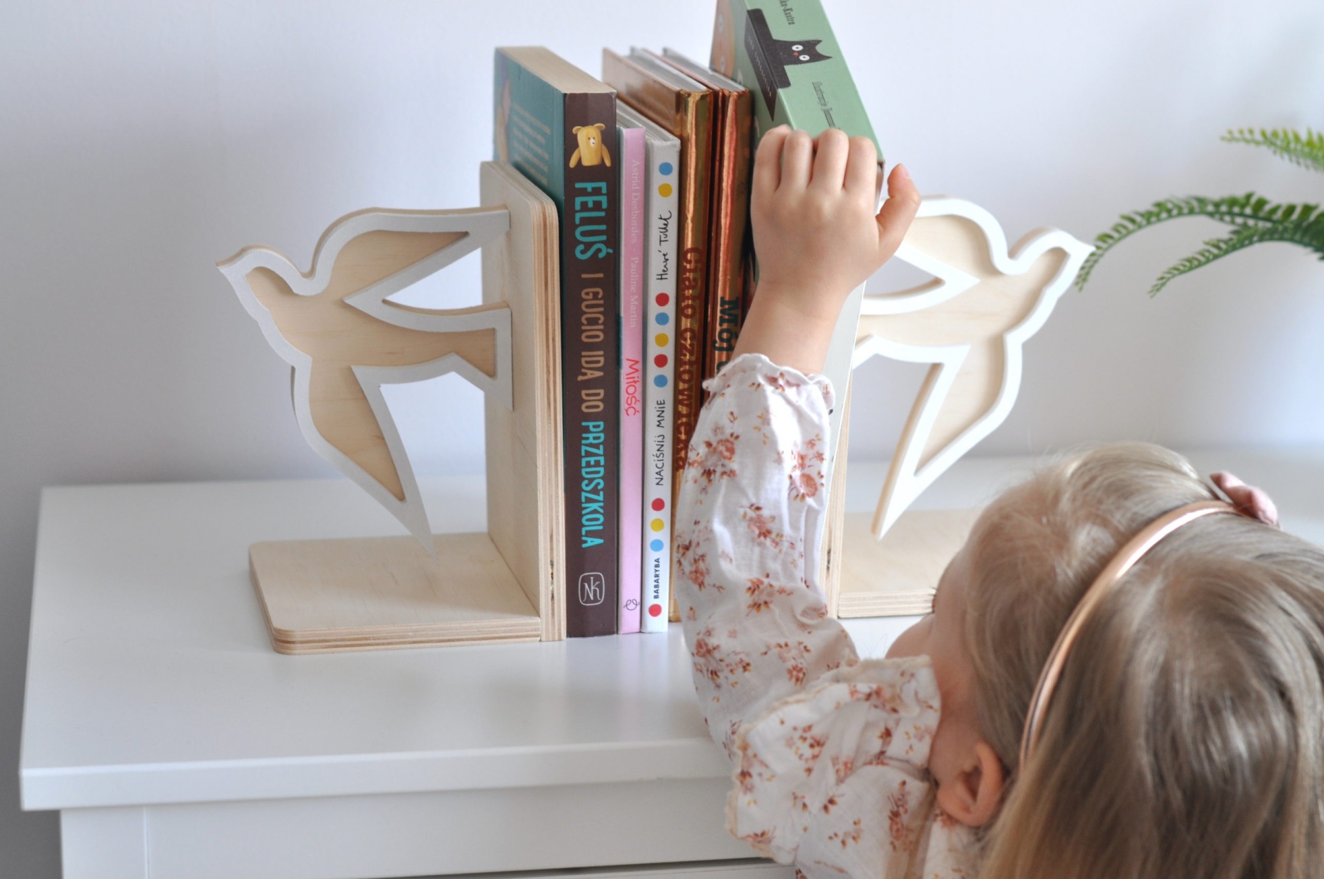 Este encantador conjunto de suportes para livros em madeira, feito à mão com o formato de uma andorinha, é perfeito para trazer um toque poético e lúdico ao quarto ou espaço de leitura das crianças.