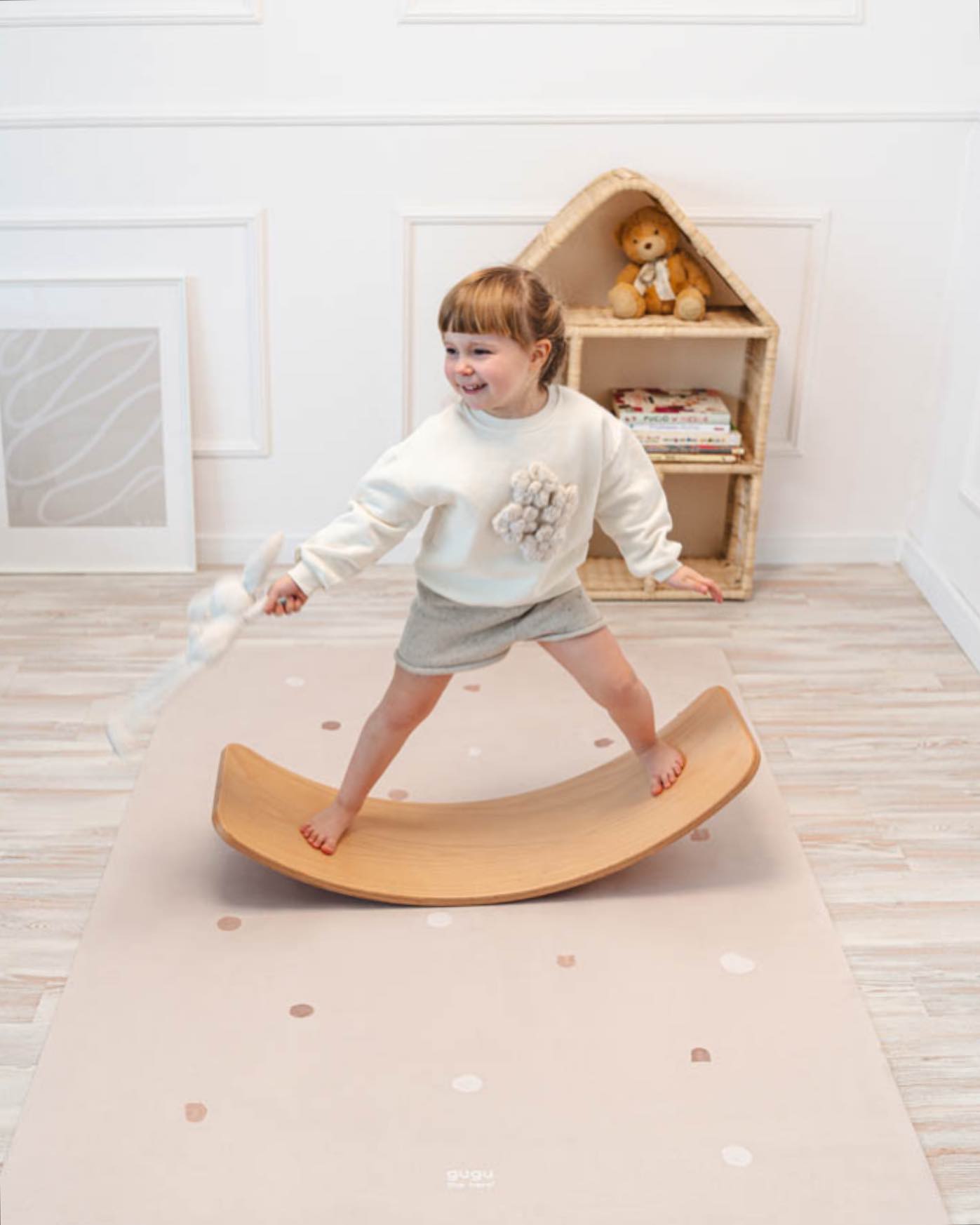Adere perfeitamente ao chão, um bebé gatinhando ou aprendendo a andar tem uma base estável e sem bordas altas que possa tropeçar. A delicada camada superior confere o conforto de um tapete agradável.